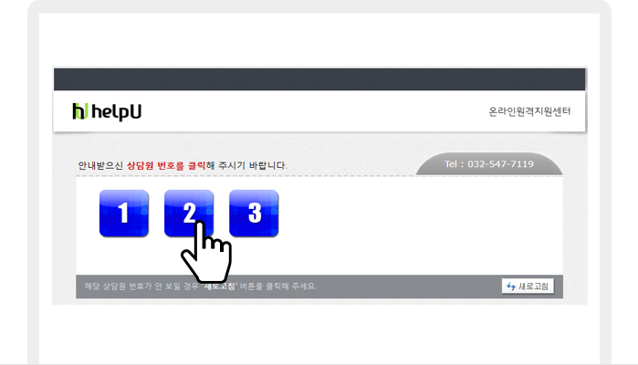 표시되는 화면에서 상담원이 불러주는 번호를 클릭합니다.