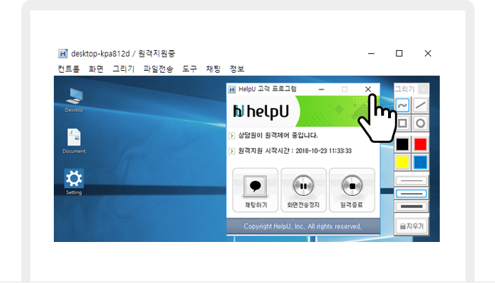 X버튼을 클릭하여 원격지원을 종료합니다.